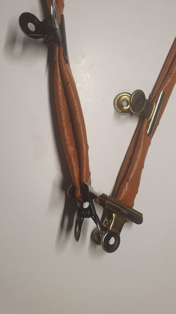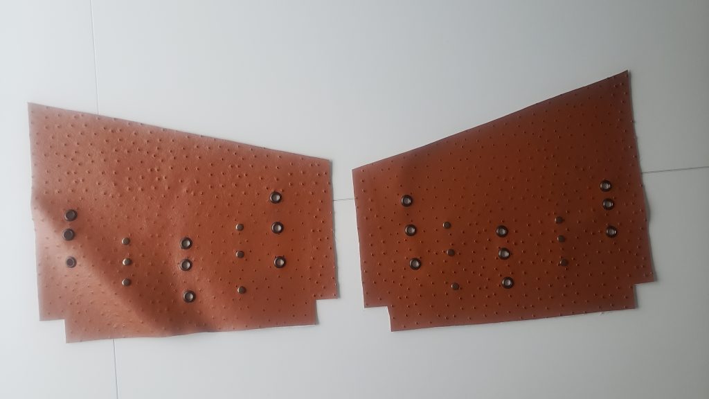 3- Sur les deux faces et à l’aide du patron, réaliser les trous sur les emplacements des œillets et des rivets.