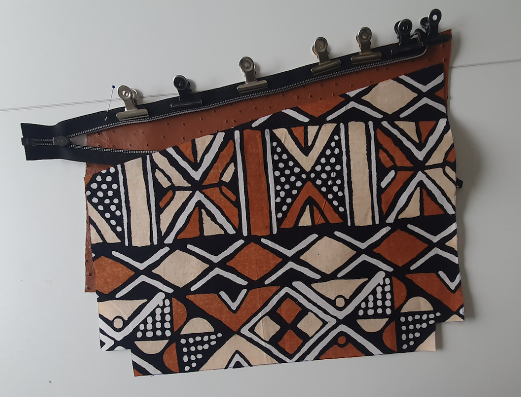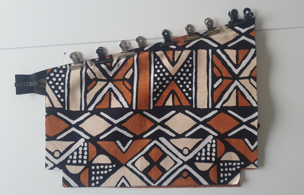 14- Piquer les côtés et le bas de chaque partie en veillant à laisser une ouverture d’environ 10 cm dans la partie doublure (moi, j’ai laissée ou ouverture dans une poche zippée).