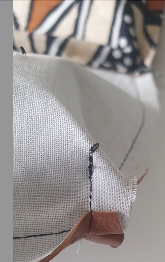 17- Fermer cette ouverture en faisant un repli sur les deux épaisseurs puis en piquant à quelques millimètres du bord.