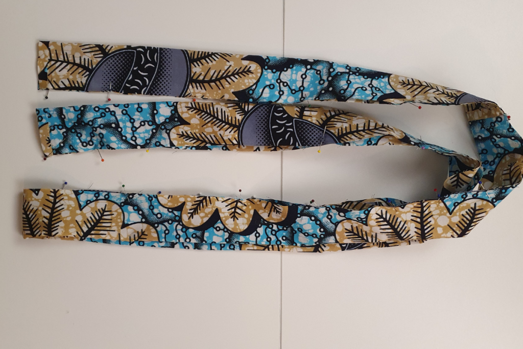 3- Retourner la bande sur l’endroit à l’aide d’une épingle à nourrice ou d’un autre ustensile.