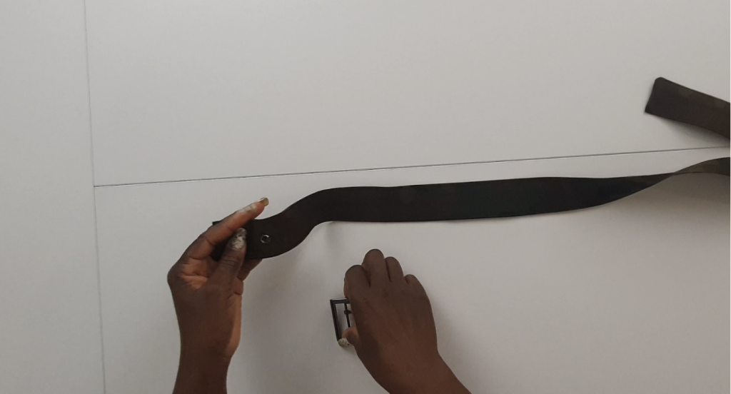 La hauteur finale de la ceinture doit être égale à la largeur de la barre de la boucle de ceinture.